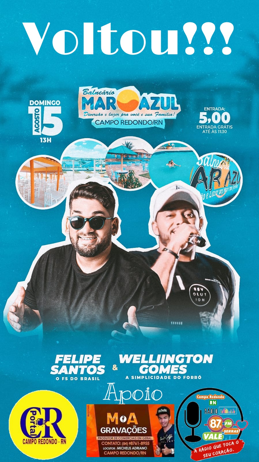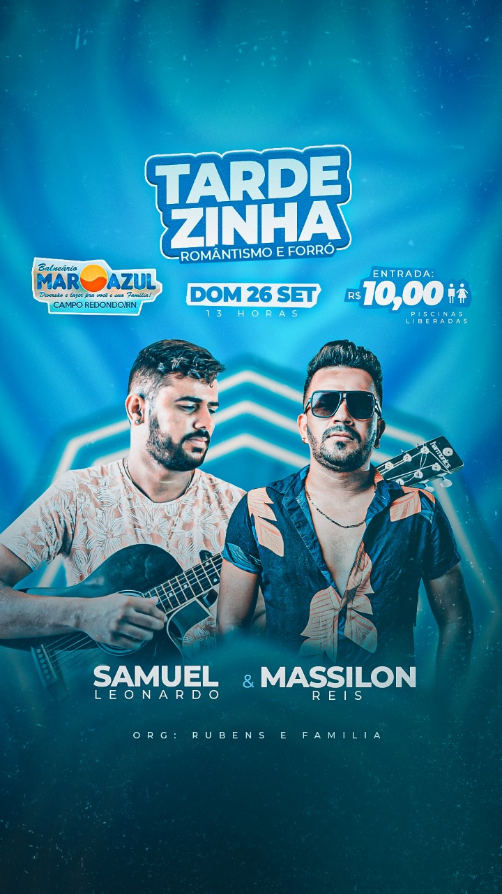 O BALNEÁRIO MAR AZUL APRESENTA TARDEZINHA COM MESSIAS PARAGUAI E FELIPE SANTOS NESTE DOMINGO(17).