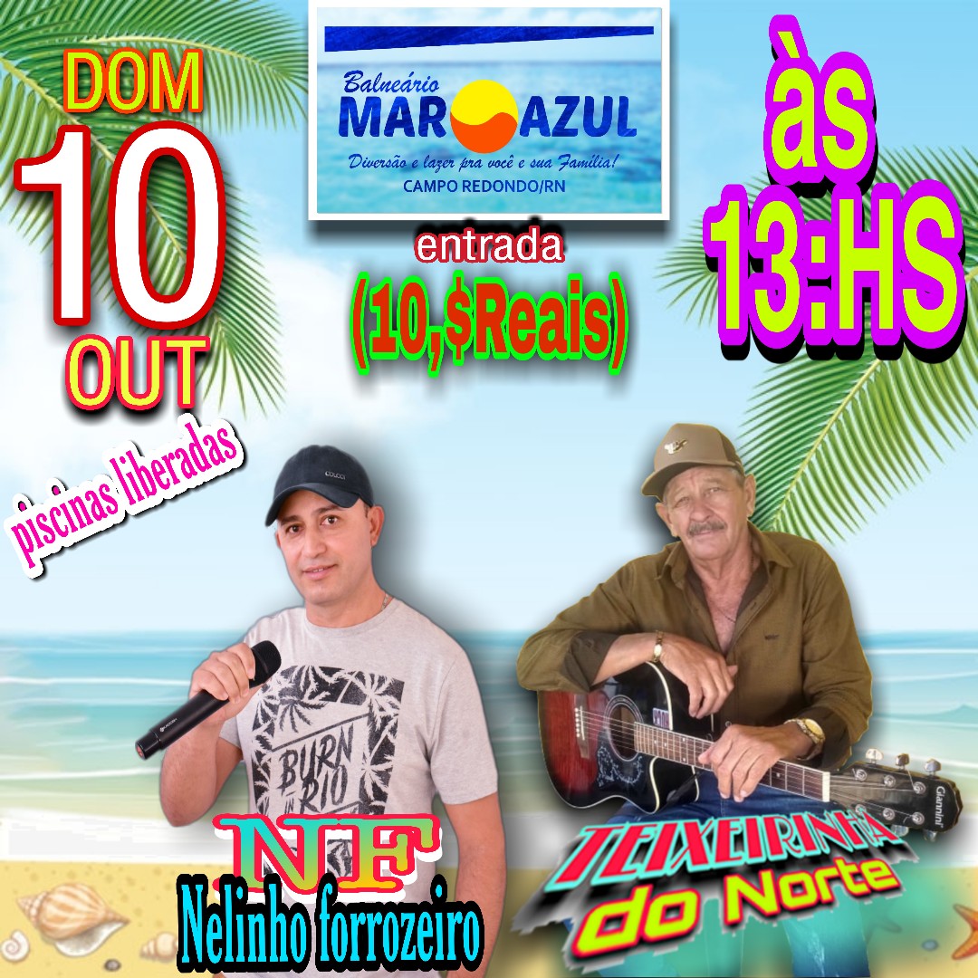 O BALNEÁRIO MAR AZUL DE CAMPO REDONDO-RN APRESENTA NELINHO FORROZEIRO E TEIXEIRA TEIXEIRINHA DO NORTE NESTE DOMINGO(10).