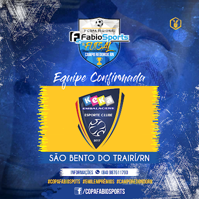 Keka Embalagens Esporte Clube da cidade de São Bento do Trairí e mais uma equipe confirmada na 3ª Copa Fabio Sports de Futsal, o time São-bentense tem sua base 100% de atletas formados em seu município e já conta com a experiência em competições regionais.