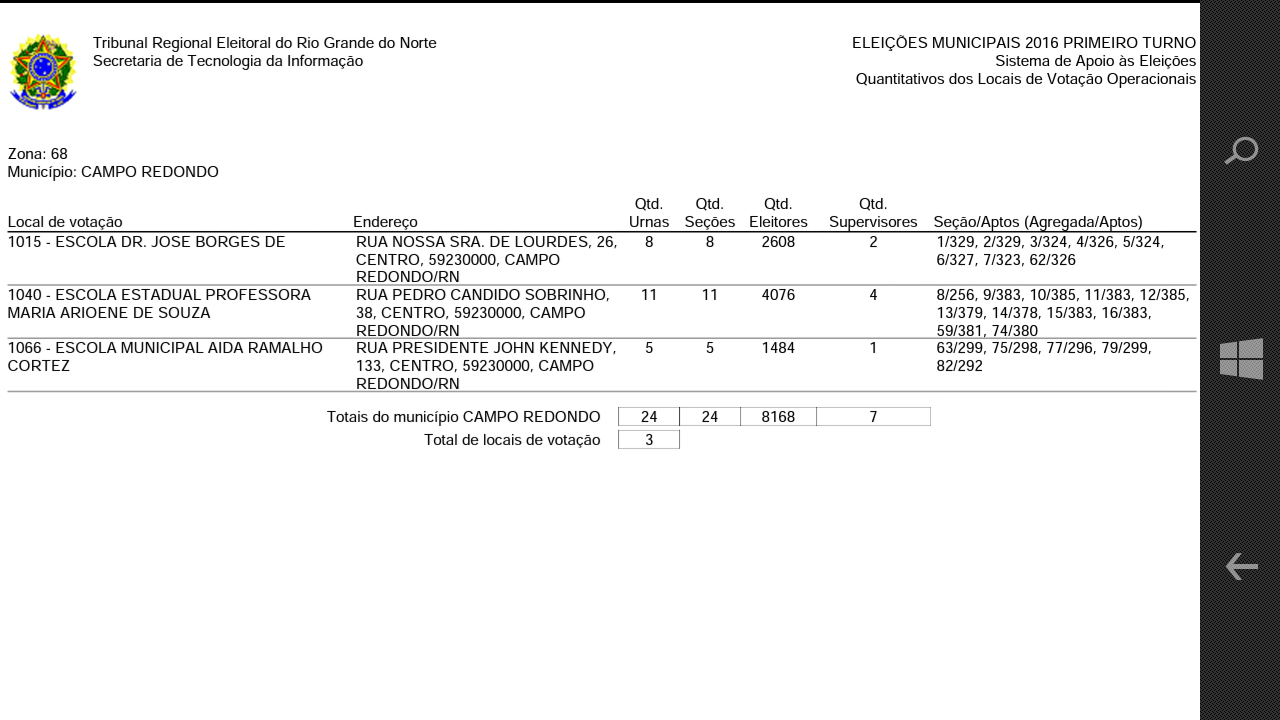 RESULTADO OFICIAL PARA VEREADORES DE CAMPO REDONDO