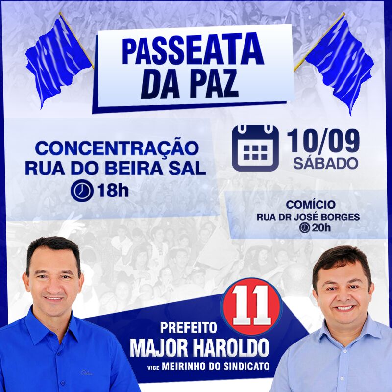 O candidato a prefeito de Campo Redondo-RN Major Haroldo da coligação (Forte é o povo) irá realizar uma passeata no próximo sábado dia 28 de setembro nas ruas da cidade. As informações foram divulgadas nas redes sociais do candidato, como vocês podem observar abaixo: "Neste SÁBADO tem mais 55 pelas ruas de Campo Redondo!