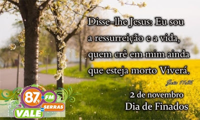 O Dia de Finados é o dia da celebração da vida eterna das pessoas queridas que já faleceram. É o Dia do Amor, porque amar é sentir que o outro não morrerá nunca.