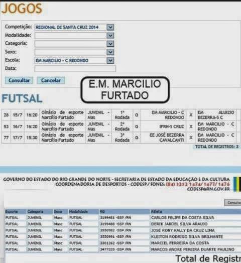 Confira também a relação dos alunos/atletas das Escolas Municipais de Campo Redondo que participarão da 8ª edição dos Jogos Escolares do Rio Grande do Norte - JERNs 2014.