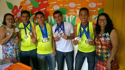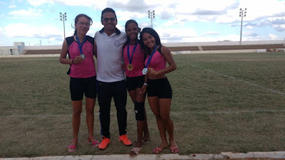 As alunas do atletismo, Joyce Eduarda, Jadnaelma Ferreira, Fernanda Roberta e Maria Daguimar e Francisco das Chagas, que representa a Escola Estudual Maria Arioene está fazendo bonito nos Jerns 2017 - Regional Sant Cruz/RN. Elas já conquistaram medalhas de ouro, prata e bronze. E de quebra garantiram vaga na fase estadual da competição do âmbito escolar do RN.