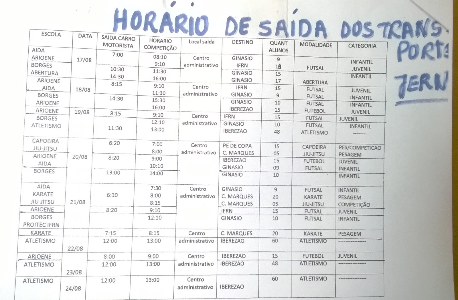 Senhores diretores, professores e alunos observem os dias que cada atleta vai competir e divulguem em suas escolas.