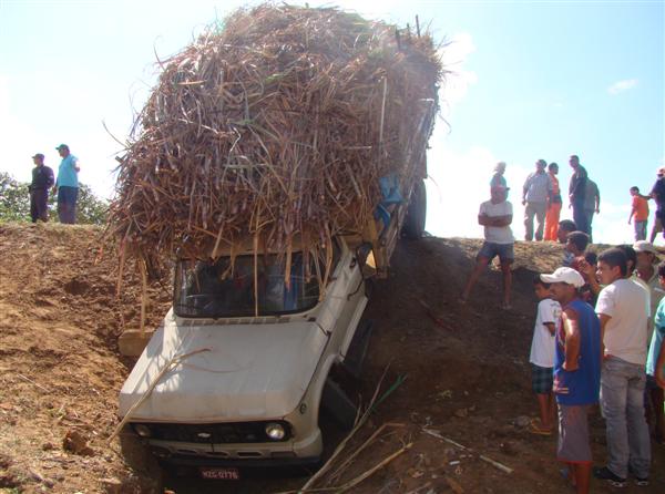 ACIDENTE COM CAÇAMBA QUE TRANSPORTAVA BRITA NA ESTRADA QUE LIGA CAMPO REDONDO AO SÍTIO BALDO.